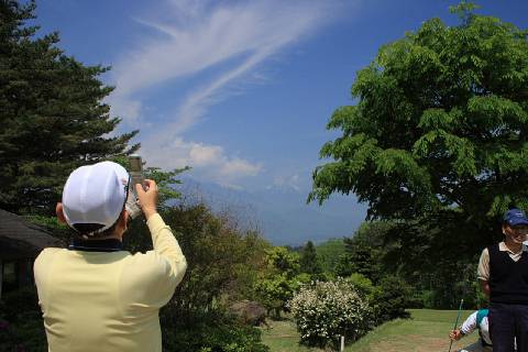 | 美観に見とれゴルフはそっちのけ(古田君) | ラウンド中に見る雪を抱いた甲斐の山々 |