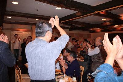 | 30年代卒を代表して挨拶する白球王子 | 外はもうクリスマスモードでした |