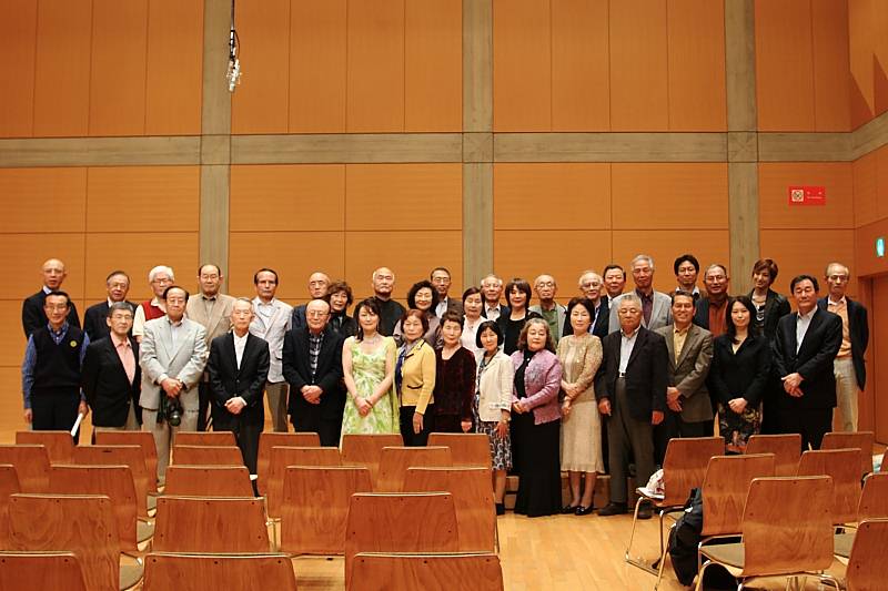 | オペラ歌手秋永佳代さん(前列左より6人目)を囲んで 宝塚男役スターの柚香光さん(後列右より2人目、お母さんは前列右より2人目)もいるヨ |